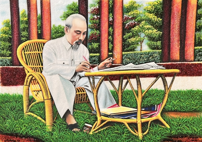 Hình ảnh Bác Hồ ngồi ghế mây gợi nhớ đến lối sống giản dị, khiêm nhường dù Người giữ cương vị cao nhất đất nước. Đây là biểu tượng của đạo đức, trí tuệ và lòng yêu nước.