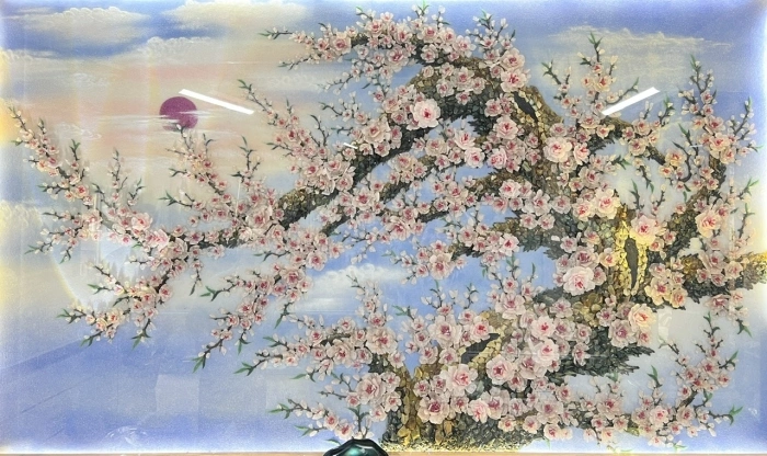 - Tranh Đá Quý Hồng Đào Khai Lộc
